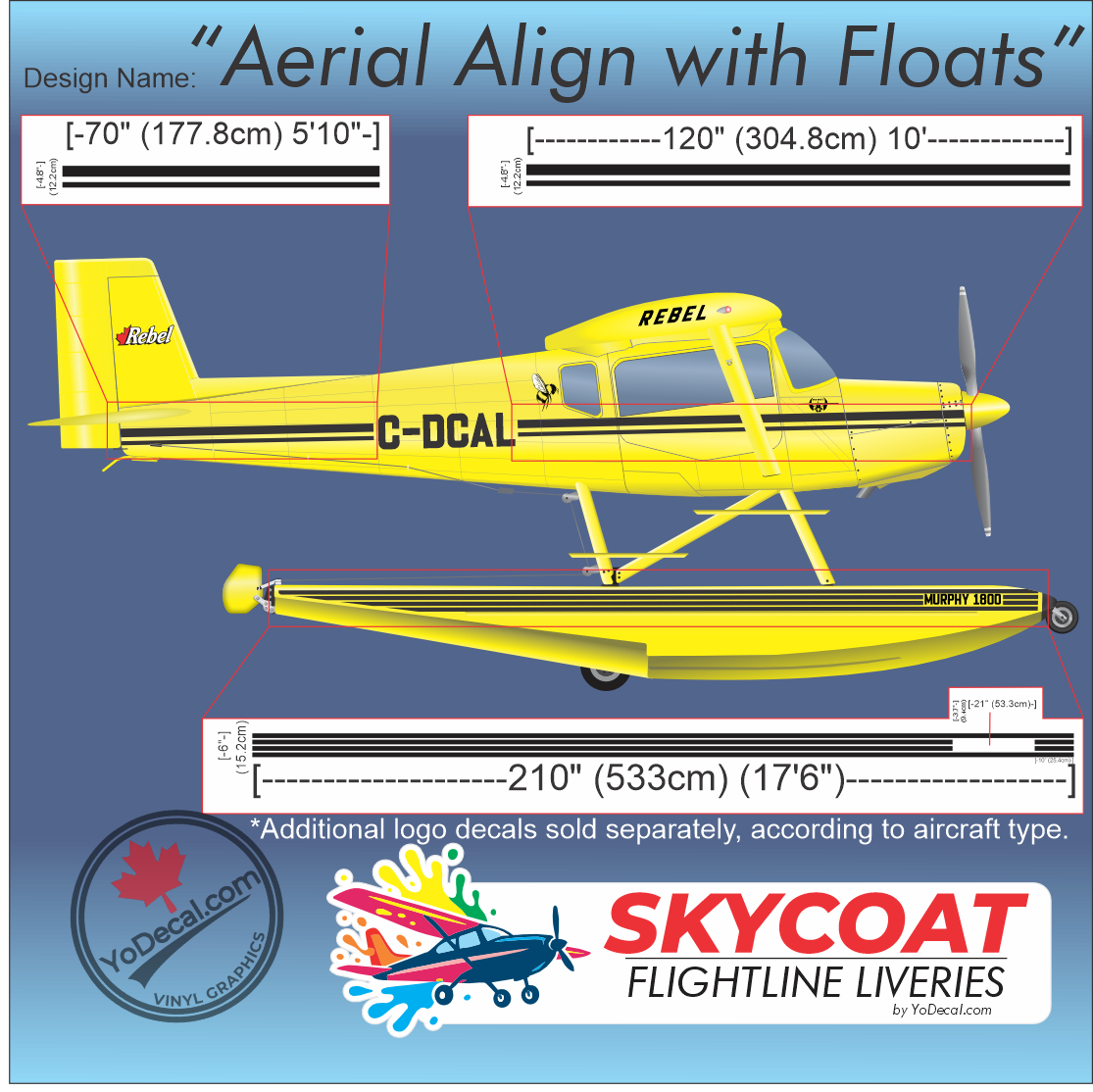 Skycoat Flightline Liveries "Aerial Align" Premium Vinyl Decal Set (Left & Right Set) Vinyl graphic accent art to complete your aircraft! Enjoy your plane even more and give her that "wow" factor! Kit is perfect for the do-it-yourself pilot! This decal set leaves spaces to add addition logo decals (sold separately). Easy to apply instructions included.