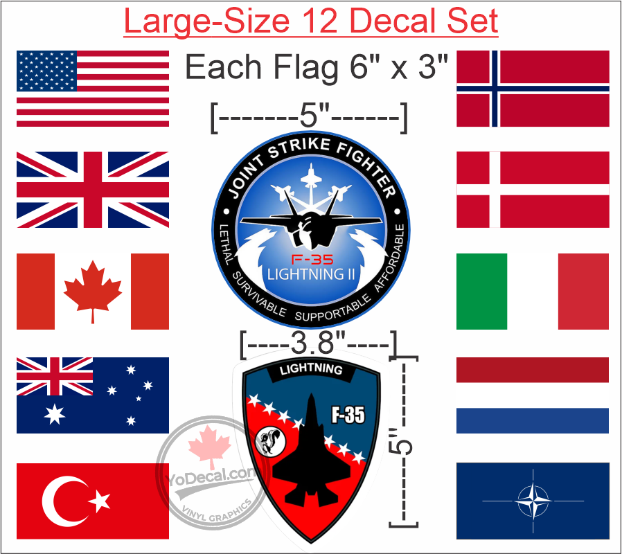 A complete decal set for your vehicle (LARGE or SMALL) to celebrate the F-35! The Lockheed Martin F-35 Lightning II is an American single-seat, single-engine, all-weather stealth multirole combat aircraft. It also has electronic warfare and intelligence, surveillance and reconnaissance capabilities. The aircraft has three main variants: the conventional takeoff and landing F-35A (CTOL), the short take-off and vertical-landing F-35B (STOVL), and the carrier-based F-35C (CV/CATOBAR).