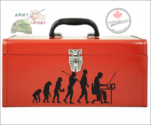 Evolution of Man - Communications & Signals - A piece by veteran Mary Fielder. Mary’s work can be seen displayed in many service members homes, exhibits and businesses. In 2018, Mary won the Royal Canadian Medical Associations coin design challenge and you can see more of her work here and on her own website at https://armytoartist.ca/ .