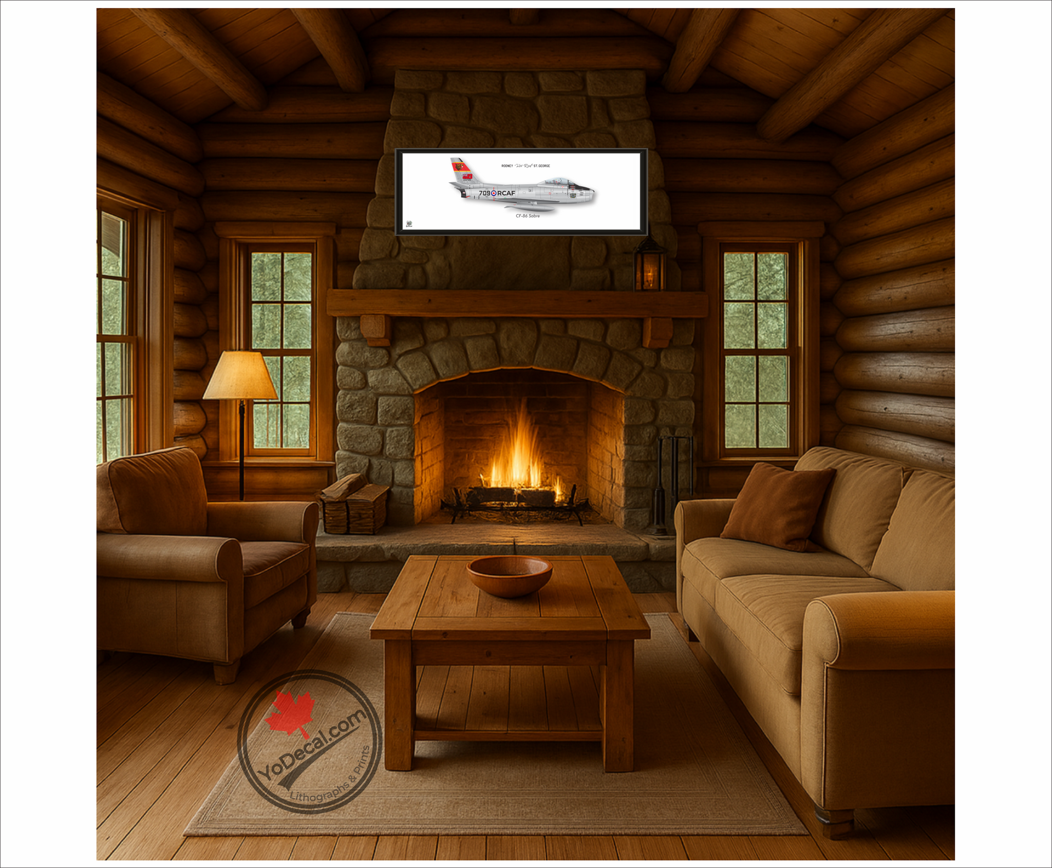 Impression artistique / lithographie du profil latéral de l’avion CF-86 Sabre PERSONNALISÉE - (cadres non inclus) représentant le CF-86 Sabre canadien de la guerre froide par Canadair, avec votre nom, indicatif et art sur le nez/casque !